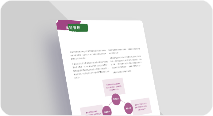 風險管理 ԫ҅ࠋப൙Пʿᔾ֛ʮ̡༺ϓഄଫͦᅺࣛהᗴจટॶٙ ࠬᎈٙ၍ଣաʫᄲࣨᄲࣨdίცࠅࣛһ՟̮໌ ࠬᎈሯʿܓdԨᆽڭʮ̡ணͭʿၪܵΥቇʿϞࣖٙࠬ ਖ਼ᚥਪٙ˕ܵf ᎈ၍ଣʿʫ္છӻ୕f Ϟᗫࠬᎈ၍ଣٙ༟ࣘ༉ࠑ˜Άุ၍ط™జѓٙ˜ਪபʿ ࣨᅰ { ࠬᎈ၍ଣʿʫ္છ™€ୋ102ࠫЇୋ103ࠫe˜ᄲࣨ ԫ҅ʿ၍ଣᄴࠋபᗆйʿʱؓމ༺ϓุਕͦᅺϾ̈ ତٙᆑίࠬᎈdԨӔ֛ᏐνО၍ଣʿಯЭ༈ഃࠬᎈf ։ࡰึ { ൙Пࠬᎈ၍ଣʿʫ္છՓܓٙϞࣖܓ™ ԫ္҅ຖ၍ଣᄴ࿁ࠬᎈ၍ଣʿʫ္છӻ୕ٙணࠇe €ୋ104ࠫʿ˜ʫᄲࣨ { ʈЪᇍᖚ™€ୋ105ࠫʫf ྼ݄ʿ္࿀dϾ၍ଣᄴΣԫ҅ԶϞᗫӻ୕݊щϞࣖ ɨྡႭʮ̡ٙ˴ࠅࠬᎈ၍ଣݴf ٙᆽႩf ၍ଣᄴᗆй࿁༺ߧุਕͦᅺ ிϓᅂᚤٙࠬᎈdԨ࣬ኽࠬᎈ ʱᗳᅺආБʱᗳf 風險識別 ၍ଣᄴீཀ֛ಂᄲݟd ൙Пʊᗆйࠬᎈٙᅂᚤձ ʲ္࿀ࠬᎈ၍ଣձʫ္છ 風險監察 風險分析 ྼ̙աࠬᎈላᏘٙܓd ݊щԑʿՉࣖঐf ˸ᆽ֛ࠬᎈ˥̻f 風險匯報 風險緩解 ֛ಂᄲݟࠬᎈԨΣᄲࣨ։ࡰึʿ ணࠇeাձྼ݄ʫ္છ Չ˼ᗫ၍ଣ˙ිజf ҏձᏐᜊςۆ˸၍ଣࠬᎈԨ ಯჀՉᅂᚤf 108