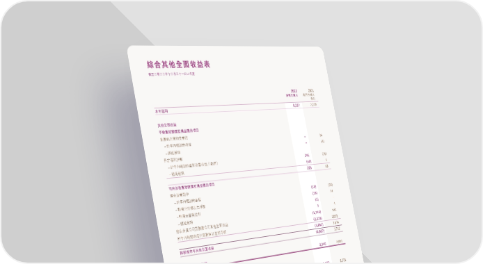 綜合其他全面收益表 ࿚Їɚཧɚɚϋɤɚ˜ɧɤɓ˚˟ϋܓ 2022 2021 ಥ࿆ϵຬʩ 港幣百萬元 重列 ͉ϋ๐л 8,227 7,279 Չ˼Όࠦϗू ʔึࠠอᓥᗳЇฦूሪٙධͦ 集團前自用物業重估 – 於年內確認的收益 – 94 – 遞延稅項 – (4) 界定福利計劃 – 於年內確認的重新計量收益/(虧損) 245 (26) – 遞延稅項 (40) 4 205 68 ̙ՉܝࠠอᓥᗳЇฦूሪٙධͦ 現金流量對沖 – 於年內確認的虧損 (16) (38) – 轉撥至財務支出淨額 (13) 14 – 轉撥至營業溢利 (1) – – 遞延稅項 5 4 應佔合資公司及聯屬公司其他全面收益 (1,744) 561 於年內確認的海外業務匯兌差額淨額 (3,323) 1,093 (5,092) 1,634 ৰܝ͉ϋՉ˼Όࠦϗू (4,887) 1,702 ͉ϋΌࠦϗूᐼᕘ 3,340 8,981 應佔全面收益總額︰ 公司股東 3,203 8,791 非控股權益 137 190 3,340 8,981 以上綜合其他全面收益表應連同隨附附註一併閱讀。 ˄̚ήପజѓࣣ2022 135