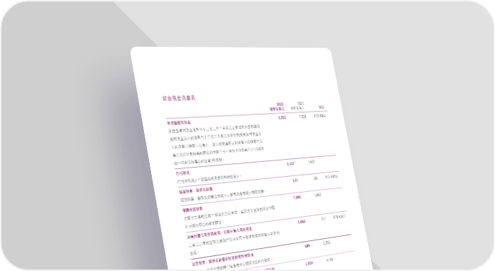 ၝΥତږݴඎڌ 2022 2021 港幣百萬元 ಥ࿆ϵຬʩ ௪ൗ 來自營運的現金 6,332 7,028 ڝൗ43(a) ԸІᐄ༶ٙତږಥ࿆ʬɤɧᄂɧɷɚϵຬʩ˴ࠅܼ̍ԸІيุҳ ༟ٙତږݴɝߒಥ࿆ɘɤɚᄂɚɷຬʩʿԸІيุ൯ርٙତږݴ ɝߒಥ࿆ɞᄂཧɧϵຬʩdʱᐄ༶ක˕ߒಥ࿆ɤ̬ᄂཧɚϵ ຬʩʿԶ̈ਯيุٙක˕ߒಥ࿆ɚɤɓᄂɘɷ̬ϵຬʩ€ʊϔಯԸ Іɓධڢછٰᛆूٙء༟התቖf 已付稅項 1,127 1,635 ʊ˹ධಯˇ˴ࠅΪމ࠰ಥᖮʹٙಛಯˇf 購買物業、廠房及設備 133 180 ڝൗ43(b) ᒅ൯يุeᅀגʿண௪ږᕘಯˇ˴ࠅΪމ࠰ಥಯˇᄣᒅண௪f 增購投資物業 7,096 3,860 ɚཧɚɚϋٙږᕘ˴ࠅމ˄̚ѥࠠܔeГτ˄̚Ԣձ࠰ಥʿʕ ʫήՉ˼ධͦٙ༟͉ක˕f 出售附屬公司所得款項,扣除出售公司的現金 1,060 212 ڝൗ43(c) ɚཧɚɚϋٙږᕘ˴ࠅމ̈ਯܵϞ߰ʍ࠰ಥيุٙڝ᙮ʮ̡ה ಛධf 出售物業、廠房及設備和投資物業所得款項 609 3,758 ɚཧɚɚϋٙږᕘˀ݈̈ਯ࠰ಥ˄۬৾̚ԓЗהಛධf 購入合資公司股份,合資公司權益增加及予合資公司借款 2,034 4,160 (減除償還部分) ɚཧɚɚϋٙږᕘ˴ࠅˀ݈ᒅɝΥ༟ʮٰ̡΅ಥ࿆ɤɖᄂɚɷຬ ʩʿΥ༟ʮ̡ٙᛆूء༟ಥ࿆ɤɓᄂɚɷɧϵຬʩʿၾΥ༟ʮ ̡࠾ಛᜊਗଋᕘf 償還借款、債券及租賃負債(減除動用借款及再融資) 1,838 2,856 ɚཧɚɚϋٙږᕘ˴ࠅˀ݈Ꮅᒔʕಂୃኽdʱ࠰ಥ՟ٙვ Б࠾ಛהתቖf ˄̚ήପజѓࣣ2022 79