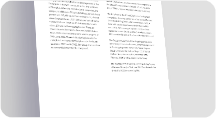 REVIEW OF OPERATIONS Others Investment Properties – U.S.A. Zhangyuan, Shanghai Overview In 2021, the Group formed a joint venture management Brickell City Centre, Miami company with Shanghai Jing’an Real Estate (Group) Co., Ltd. This company, which the Group has a 60% interest, Brickell City Centre is an urban mixed-use development in is engaged in the revitalisation and management of the the Brickell financial district of Miami, U.S.A. It has a site Zhangyuan shikumen compound in the Jing’an district area of 504,017 square feet (approximately 11.6 acres). of Shanghai. When the revitalisation is completed, the The first phase of the Brickell City Centre development compound will have a GFA of 645,840 square feet above comprises a shopping centre, two office towers (Two and ground and 753,480 square feet underground, of which Three Brickell City Centre, which were sold in 2020), a an underground area of 197,000 square feet will be for hotel with serviced apartments (EAST Miami, which commercial use. There are 43 shikumen blocks with was sold in 2021) managed by Swire Hotels and two about 170 two or three-storey houses. There are residential towers (Reach and Rise) developed for sale. connections to three metro lines and to HKRI Taikoo All the residential units at Reach and Rise have been sold. Hui. Construction and renovation were in progress at 30th June 2022. The revitalisation is planned to be The Group owns 62.93% of the shopping centre at the completed and opened in two phases, in the fourth Brickell City Centre development. The remaining interest quarter of 2022 and in 2025. The Group does not have in the shopping centre is owned by Simon Property an ownership interest in the compound. Group (25%) and Bal Harbour Shops (12.07%). Bal Harbour Shops has an option, exercisable from February 2020, to sell its interest to the Group. The shopping centre was 93% leased (including by way of letters of intent) at 30th June 2022. Retail sales in the first half of 2022 increased by 36%. 34 Swire Properties Limited Interim Report 2022