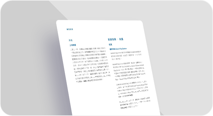 業務評述 Չ˼ ҳ༟يุ ķ ߕ ɪऎੵ ฿ᚎ 二零二一年,集團與上海靜安置業(集團)有限公司成立 ᒕڛBrickell City Centre 一間合資管理公司。這間集團持有百分之六十權益的公 司參與活化及管理上海靜安區張園石庫門歷史建築群。 Brickell City Centre是位於美國邁阿密Brickell金融區的 建築群在活化升級後,地面總樓面面積為六十四萬五千 城市綜合發展項目,佔地五十萬四千零一十七平方呎 八百四十平方呎,地下空間為七十五萬三千四百八十平 (約十一點六畝)。 方呎,其中十九萬七千平方呎的地下空間將作商業用 Brickell City Centre發展項目第一期包括一座購物中心、 途。項目包括四十三組、約一百七十幢兩層或三層高的 兩座辦公樓(Two Brickell City Centre和Three Brickell 石庫門建築,連接三條地鐵綫及上海興業太古滙。於二 City Centre,均於二零二零年售出)、一間包括服務式住 零二二年六月三十日,建築及翻新工程正在進行中,活 宅並由太古酒店管理的酒店(邁阿密東隅,已於二零二 化升級計劃分兩期於二零二二年第四季及二零二五年竣 一年售出)及兩座發展作出售用途的住宅大廈(Reach和 工及開幕。集團並無擁有該建築群的權益。 Rise)。 Reach和Rise所有住宅單位經已售出。 集團持有Brickell City Centre購物中心百分之六十二點九 三權益,餘下的權益由Simon Property Group和Bal Harbour Shops分別持有百分之二十五及百分之十二點零 七。Bal Harbour Shops可於二零二零年二月或之後行使 期權,將其權益售予集團。 於二零二二年六月三十日,購物中心的租用率(包括簽 署承租意向書)為百分之九十三。二零二二年上半年的 零售銷售額上升百分之三十六。 34 太古地產有限公司 二零二二年中期報告