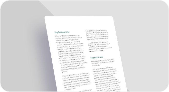 Key Developments In July 2023, the Group obtained full ownership of Wah Ha Factory Building in Quarry Bay, Hong Kong. In December 2022, the Group entered into three Together with the adjacent wholly-owned Zung Fu conditional agreements with the Sino-Ocean group to Industrial Building, the two sites are intended to be acquire further interests in Sino-Ocean Taikoo Li redeveloped for office and other commercial uses. Chengdu. Under the first agreement (which was completed in December 2022), the Group’s interest in In July 2023, a joint venture company in which the Sino-Ocean Taikoo Li Chengdu increased from 50% to Group holds a 25% interest started the pre-sales of 65%. Under the second agreement (which was LA MONTAGNE, a residential development in completed in February 2023), the Group’s interest in Wong Chuk Hang, Hong Kong. Superstructure works of the property management of Sino-Ocean Taikoo Li the development are in progress. Chengdu increased to 100%. Under the third agreement (which was completed in February 2023), the Group’s interest in the investment properties of Portfolio Overview Sino-Ocean Taikoo Li Chengdu increased to 100%. The consideration was RMB1,000 million under the first The aggregate gross floor area (“GFA”) attributable to agreement, RMB59 million under the second the Group at 30th June 2023 was approximately 34.5 agreement and RMB4,491 million under the third million square feet. agreement. Of the aggregate GFA attributable to the Group, In February 2023, the Group acquired a 40% interest in approximately 30.6 million square feet are investment a site located on Wireless Road in Lumphini sub-district properties and hotels, comprising completed investment in Pathum Wan district, Bangkok for a consideration of properties and hotels of approximately 24.7 million approximately THB2.4 billion. In partnership with City square feet and investment properties under Realty Co. Ltd., the site is expected to be developed for development or held for future development of residential purposes with a site area of approximately approximately 5.9 million square feet. In Hong Kong, 136,000 square feet. the investment property and hotel portfolio comprises approximately 13.7 million square feet attributable to the In June 2023, the Group announced plans to develop a Group of primarily Grade-A office and retail premises, luxury residential project on Brickell Key in Miami, hotels, serviced apartments and other luxury residential which will include the redevelopment of the existing accommodation. In the Chinese Mainland, the Group has Mandarin Oriental Miami hotel. The project, called interests in eight major commercial developments in One Island Drive, will consist of two towers. The first prime locations in Beijing, Guangzhou, Chengdu, tower will comprise luxury private residences managed Shanghai, Xi’an and Sanya. These developments are by Mandarin Oriental. The second tower will comprise a expected to comprise approximately 14.8 million square new Mandarin Oriental hotel as well as private feet of attributable GFA when they are all completed. Of residences and hotel residences. Sales are expected to this, 10.6 million square feet has already been completed. launch in early 2024. Outside Hong Kong and the Chinese Mainland, the investment property portfolio comprises the Brickell City Centre development in Miami, U.S.A. 21