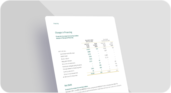 Financing Changes in Financing Financial Information Reviewed by Auditors Analysis of Changes in Financing Six months ended Year ended 30th June 2023 31st December 2022 Loans and Lease Loans and Lease bonds liabilities bonds liabilities HK$M HK$M HK$M HK$M At 1st January 22,835 614 24,601 566 Loans drawn and refinanced 5,088 – 7,237 – Bonds issued 3,251 – – – Bonds matured (200) – (3,899) – Repayment of loans (830) – (5,110) – Acquisition of subsidiaries 3,151 42 – – New leases arranged during the period – 54 – 160 Principal elements of lease payments – (38) – (66) Currency adjustment (235) (20) 2 (46) Other non-cash movements 48 1 4 – At 30th June/31st December 33,108 653 22,835 614 Net Debt Financial Information Reviewed by Auditors Net debt at 30th June 2023 was HK$29,514 million, compared with HK$18,947 million at 31st December 2022. The increase in net debt principally reflected capital and development expenditure and investment in joint venture companies and acquisitions of subsidiary companies. 46 Swire Properties Limited Interim Report 2023