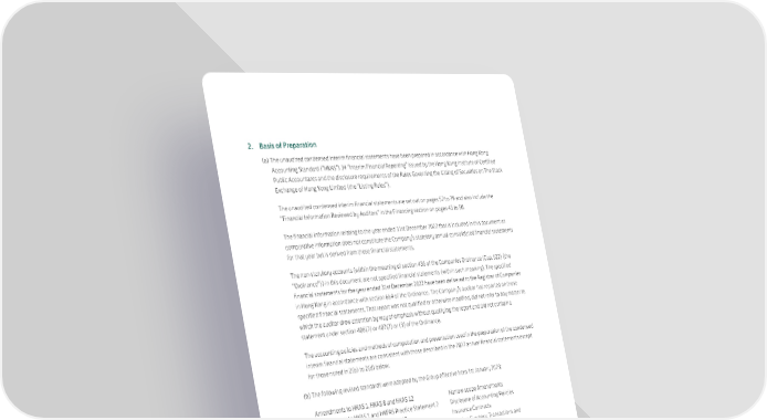 2. Basis of Preparation (a) The unaudited condensed interim financial statements have been prepared in accordance with Hong Kong Accounting Standard (“HKAS”) 34 “Interim Financial Reporting” issued by the Hong Kong Institute of Certified Public Accountants and the disclosure requirements of the Rules Governing the Listing of Securities on The Stock Exchange of Hong Kong Limited (the “Listing Rules”). The unaudited condensed interim financial statements are set out on pages 52 to 79 and also include the “Financial Information Reviewed by Auditors” in the Financing section on pages 45 to 50. The financial information relating to the year ended 31st December 2022 that is included in this document as comparative information does not constitute the Company’s statutory annual consolidated financial statements for that year but is derived from those financial statements. The non-statutory accounts (within the meaning of section 436 of the Companies Ordinance (Cap. 622) (the “Ordinance”)) in this document are not specified financial statements (within such meaning). The specified financial statements for the year ended 31st December 2022 have been delivered to the Registrar of Companies in Hong Kong in accordance with section 664 of the Ordinance. The Company’s auditor has reported on those specified financial statements. That report was not qualified or otherwise modified, did not refer to any matter to which the auditor drew attention by way of emphasis without qualifying the report and did not contain a statement under section 406(2) or 407(2) or (3) of the Ordinance. The accounting policies and methods of computation and presentation used in the preparation of the condensed interim financial statements are consistent with those described in the 2022 annual financial statements except for those noted in 2(b) to 2(d) below. (b) The following revised standards were adopted by the Group effective from 1st January 2023: Amendments to HKAS 1, HKAS 8 and HKAS 12 Narrow-scope Amendments Amendments to HKAS 1 and HKFRS Practice Statement 2 Disclosure of Accounting Policies HKFRS 17 and Amendments to HKFRS 17 Insurance Contracts HK(IFRIC)-Interpretation 22 Foreign Currency Transactions and Advance Consideration None of the new and revised standards and interpretation had a significant effect on the Group’s consolidated financial statements or accounting policies. 59