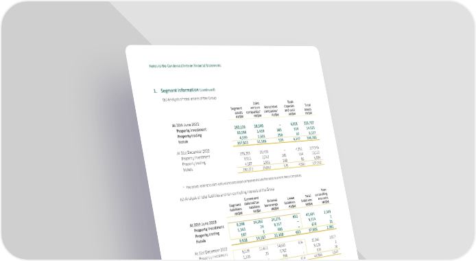Notes to the Condensed Interim Financial Statements 1. Segment Information (continued) (b) Analysis of total assets of the Group Joint Bank Segment venture Associated deposits Total assets companies* companies* and cash assets HK$M HK$M HK$M HK$M HK$M At 30th June 2023 Property investment 293,136 28,540 – 4,051 325,727 Property trading 10,188 3,439 285 109 14,021 Hotels 4,599 1,601 250 87 6,537 307,923 33,580 535 4,247 346,285 At 31st December 2022 Property investment 278,255 35,439 – 4,252 317,946 Property trading 9,911 2,762 285 164 13,122 Hotels 4,107 1,661 240 86 6,094 292,273 39,862 525 4,502 337,162 * The assets relating to joint venture and associated companies include the loans due from these companies. (c) Analysis of total liabilities and non-controlling interests of the Group Current and Non- Segment deferred tax External Lease Total controlling liabilities liabilities borrowings liabilities liabilities interests HK$M HK$M HK$M HK$M HK$M HK$M At 30th June 2023 Property investment 8,398 14,162 24,271 653 47,484 2,959 Property trading 1,343 24 8,357 – 9,724 1 Hotels 197 1 480 – 678 31 9,938 14,187 33,108 653 57,886 2,991 At 31st December 2022 Property investment 8,529 11,413 14,685 614 35,241 3,017 Property trading 1,326 20 7,782 – 9,128 2 Hotels 167 – 368 – 535 28 10,022 11,433 22,835 614 44,904 3,047 (d) Analysis of external revenue of the Group – Timing of revenue recognition Rental At a point income in time Over time on leases Total HK$M HK$M HK$M HK$M Six months ended 30th June 2023 Property investment – 55 6,677 6,732 Property trading 89 – – 89 Hotels 221 255 – 476 310 310 6,677 7,297 Six months ended 30th June 2022 (Restated) Property investment – 50 6,215 6,265 Property trading 383 – – 383 Hotels 153 109 – 262 536 159 6,215 6,910 There are no significant differences from the last annual financial statements in the basis of segmentation or in the basis of measurement of segment profit or loss. 58 Swire Properties Limited Interim Report 2023