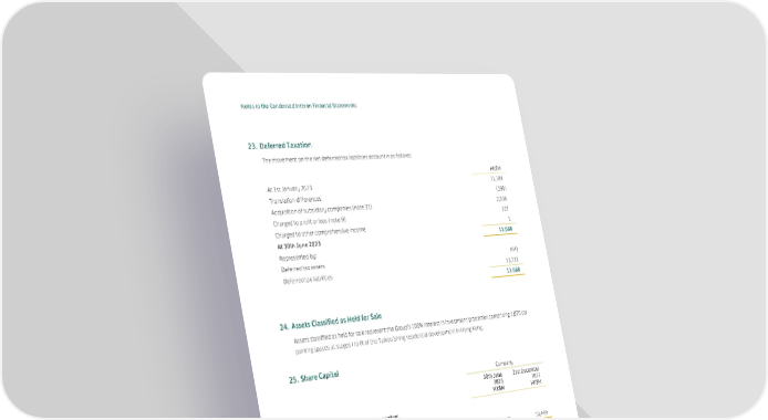 Notes to the Condensed Interim Financial Statements 23. Deferred Taxation The movement on the net deferred tax liabilities account is as follows: HK$M At 1st January 2023 11,184 Translation differences (390) Acquisition of subsidiary companies (note 31) 2,536 Charged to profit or loss (note 9) 337 Charged to other comprehensive income 1 At 30th June 2023 13,668 Represented by: Deferred tax assets (64) Deferred tax liabilities 13,732 13,668 24. Assets Classified as Held for Sale Assets classified as held for sale represent the Group’s 100% interest in investment properties comprising 1,070 car parking spaces at stages I to IX of the Taikoo Shing residential development in Hong Kong. 25. Share Capital Company 30th June 31st December 2023 2022 HK$M HK$M Issued and fully paid with no par value: At 30th June 2023 and 31st December 2022 5,850,000,000 ordinary shares 10,449 10,449 There was no purchase, sale or redemption by the Company, or any of its subsidiaries, of the Company’s shares during the period. 74 Swire Properties Limited Interim Report 2023