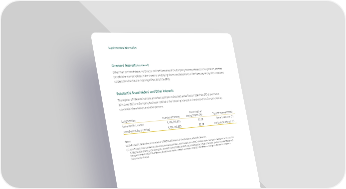 Supplementary Information Directors’ Interests (continued) Other than as stated above, no Director or Chief Executive of the Company had any interest or short position, whether beneficial or non-beneficial, in the shares or underlying shares and debentures of the Company or any of its associated corporations (within the meaning of Part XV of the SFO). Substantial Shareholders’ and Other Interests The register of interests in shares and short positions maintained under Section 336 of the SFO shows that at 30th June 2023 the Company had been notified of the following interests in the shares of the Company held by substantial shareholders and other persons: Percentage of Long position Number of Shares Voting Shares (%) Type of Interest (notes) Swire Pacific Limited 4,796,765,835 82.00 Beneficial owner (1) John Swire & Sons Limited 4,796,765,835 82.00 Attributable interest (2) Notes: (1) Swire Pacific Limited was interested in 4,796,765,835 shares of the Company as beneficial owner. (2) John Swire & Sons Limited and its wholly-owned subsidiary John Swire & Sons (H.K.) Limited were deemed to be interested in a total of 4,796,765,835 shares of the Company, in which Swire Pacific Limited was interested, by virtue of the John Swire & Sons Limited group being interested in 60.31% of the equity of Swire Pacific Limited and controlling 68.13% of the voting rights attached to shares in Swire Pacific Limited. 82 Swire Properties Limited Interim Report 2023