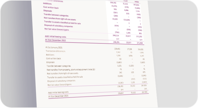 NOTES TO THE FINANCIAL STATEMENTS 16. Investment Properties (continued) Under Completed Development Total HK$M HK$M HK$M At 1st January 2022 236,703 31,112 267,815 Translation differences (3,279) (170) (3,449) Additions 935 6,806 7,741 Cost written back (367) (53) (420) Disposals (269) – (269) Transfer between categories 15,629 (15,629) – Net transfers from right-of-use assets – 2 2 Transfer to assets classified as held for sale (474) – (474) Disposal of subsidiary companies – (556) (556) Net fair value (losses)/gains (764) 1,565 801 248,114 23,077 271,191 Add: Initial leasing costs 177 – 177 At 31st December 2022 248,291 23,077 271,368 At 1st January 2021 239,493 27,338 266,831 Translation differences 1,142 13 1,155 Additions 1,191 3,056 4,247 Cost written back (6) – (6) Disposals (1,603) – (1,603) Transfer between categories 1,131 (1,131) – Net transfers from property, plant and equipment (note 15) 41 – 41 Net transfers from right-of-use assets 242 633 875 Transfer to assets classified as held for sale (1,646) – (1,646) Disposal of subsidiary companies – (132) (132) Net fair value (losses)/gains (3,282) 1,335 (1,947) 236,703 31,112 267,815 Add: Initial leasing costs 144 – 144 At 31st December 2021 236,847 31,112 267,959 158