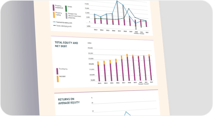 PROFIT ATTRIBUTABLE HK$M TO THE COMPANY’S 36,000 SHAREHOLDERS 30,000 24,000 Property Hotels 18,000 investment 12,000 Property Cange in air trading vale o investment 6,000 properties 0 otal attritale proit otal nderlying proit -6,000 2013 2014 2015 2016 2017 2018 2019 2020 2021 2022 estated estated TOTAL EQUITY AND HK$M NET DEBT 350,000 300,000 250,000 200,000 Total equity 150,000 Net debt 100,000 50,000 2013 2014 2015 2016 2017 2018 2019 2020 2021 2022 (Restated) (Restated) RETURNS ON % AVERAGE EQUITY 20 15 10 5 Group Group – underlying 0 2013 2014 2015 2016 2017 2018 2019 2020 2021 2022 (Restated) (Restated) SWIRE PROPERTIES ANNUAL REPORT 2022 19