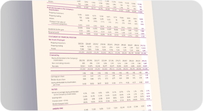 TEN-YEAR FINANCIAL SUMMARY 2013 2014 2015 2016 2017 2018 2019 2020 2021 2022 HK$M HK$M HK$M HK$M HK$M HK$M HK$M HK$M HK$M HK$M Restated Restated STATEMENT OF PROFIT OR LOSS Revenue Property investment 9,786 10,456 10,857 10,902 11,380 12,254 12,410 12,635 12,981 12,340 Property trading 2,207 3,842 4,463 4,760 5,833 1,061 516 312 2,443 921 Hotels 942 1,089 1,127 1,130 1,345 1,404 1,296 641 894 565 12,935 15,387 16,447 16,792 18,558 14,719 14,222 13,588 16,318 13,826 Profit Attributable to the Company’s Shareholders Property investment 5,426 6,029 6,231 5,938 6,671 8,732 10,061 8,839 8,654 8,025 Property trading 720 1,020 1,089 1,199 1,111 99 (18) (87) 601 171 Hotels (46) 30 (303) (117) (43) (41) (70) (524) (307) (341) Change in fair value of investment properties 6,425 2,437 7,055 8,030 26,218 19,876 3,450 (4,645) (1,836) 125 12,525 9,516 14,072 15,050 33,957 28,666 13,423 3,583 7,112 7,980 Dividends for the year 3,510 3,861 4,154 4,154 4,505 4,914 5,148 5,324 5,558 5,850 Retained profit 9,015 5,655 9,918 10,896 29,452 23,752 8,275 (1,741) 1,554 2,130 STATEMENT OF FINANCIAL POSITION Net Assets Employed Property investment 218,556 226,607 235,917 248,466 283,045 299,659 289,185 282,257 288,246 293,752 Property trading 9,408 8,210 7,452 6,616 3,942 4,143 7,789 7,249 9,637 11,612 Hotels 7,200 7,801 7,928 7,520 7,738 7,394 7,229 7,243 6,061 5,841 235,164 242,618 251,297 262,602 294,725 311,196 304,203 296,749 303,944 311,205 Financed by Equity attributable to the Company’s shareholders 202,350 207,691 216,247 225,369 257,381 279,275 286,927 288,216 291,624 289,211 Non-controlling interests 800 856 1,702 1,856 1,997 2,016 1,984 1,928 1,986 3,047 Net debt 32,014 34,071 33,348 35,377 35,347 29,905 15,292 6,605 10,334 18,947 235,164 242,618 251,297 262,602 294,725 311,196 304,203 296,749 303,944 311,205 HK$ HK$ HK$ HK$ HK$ HK$ HK$ HK$ HK$ HK$ Earnings per share 2.14 1.63 2.41 2.57 5.80 4.90 2.29 0.61 1.22 1.36 Dividends per share 0.60 0.66 0.71 0.71 0.77 0.84 0.88 0.91 0.95 1.00 Equity attributable to shareholders per share 34.59 35.50 36.97 38.52 44.00 47.74 49.05 49.27 49.85 49.44 RATIOS Return on average equity attributable to the Company’s shareholders 6.3% 4.6% 6.6% 6.8% 14.1% 10.7% 4.7% 1.2% 2.5% 2.7% Gearing ratio 15.8% 16.3% 15.3% 15.6% 13.6% 10.6% 5.3% 2.3% 3.5% 6.5% Interest cover – times 10.02 8.96 13.56 15.48 38.81 33.29 28.85 12.93 20.78 48.26 Dividend payout ratio 28.0% 40.6% 29.5% 27.6% 13.3% 17.1% 38.4% 148.6% 78.1% 73.3% UNDERLYING Profit (HK$M) 6,348 7,152 7,078 7,112 7,834 10,148 24,130 12,166 9,532 8,706 Return on average equity attributable to the Company’s shareholders 3.2% 3.5% 3.3% 3.2% 3.2% 3.8% 8.5% 4.2% 3.3% 3.0% Earnings per share (HK$) 1.09 1.22 1.21 1.22 1.34 1.73 4.12 2.08 1.63 1.49 Interest cover – times 6.43 7.58 7.75 8.89 10.68 12.58 48.16 32.10 32.96 74.74 Dividend payout ratio 55.3% 54.0% 58.7% 58.4% 57.5% 48.4% 21.3% 43.8% 58.3% 67.2% Notes: 1. The information for all years is shown in accordance with the Group’s current accounting policies and disclosure practices. Consequently figures for years prior to 2022 may be different from those originally presented. 2. The equity attributable to the Company’s shareholders and the returns by segment for 2022 and 2021 are shown in the Financial Review – Investment Appraisal and Performance Review on page 80. 3. Underlying profit is discussed on pages 33 to 35. 4. Refer to Glossary on page 215 for definitions and ratios. 17 SWIRE PROPERTIES ANNUAL REPORT 2022