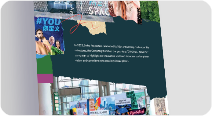 In 2022, Swire Properties celebrated its 50th anniversary. To honour this milestone, the Company launched the year-long “ORIGINAL. ALWAYS.” campaign to highlight our innovative spirit and showcase our long-term vision and commitment to creating vibrant places.