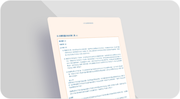 ˄̚ήପజѓࣣ2023 22. 按類別劃分的金融工具(續) 會計政策(續) ږፄ༟ପ(續) (c) ࠇඎ(續) (i) 攤銷成本計量:持作收取合約現金流量的資產,倘該等現金流量僅為支付本金及利息,則按攤銷成本計量。來自該等金融 資產的利息收入採用實際利率法計入財務收入中。因終止確認而產生的任何收益或虧損在綜合損益表中直接確認,並連同 匯兌收益或虧損在其他收益/(虧損)淨額項中呈列。 (ii) 透過其他全面收益按公平值計量:持作收取合約現金流量及出售金融資產的資產,倘該等資產的現金流量僅為支付本金及 利息,則透過其他全面收益按公平值計量。賬面值的變動計入其他全面收益,惟於綜合損益表確認的減值收益或虧損、利 息收入和匯兌盈虧則除外。當金融資產終止確認,之前在其他全面收益中確認的累計損益,將從權益賬中重新歸類至綜合 損益表,並在其他收益/(虧損)淨額中確認。該等金融資產的利息收入按實際利率法計入財務收入中。匯兌收益及虧損於 其他收益/(虧損)淨額呈列。 (iii) 透過損益賬按公平值計量:不符合攤銷成本計量或透過其他全面收益按公平值計量標準的資產,按公平值列入損益賬計 量。其後按公平值列入損益賬計量的債務投資的收益或虧損於綜合損益表確認,並於產生的期間在其他收益/(虧損)淨額 項中以淨值呈列。 – 權益工具 集團其後按公平值計量所有權益投資。當集團有權收取股息款項時,該等投資的股息於綜合損益表確認為其他收益/(虧損)淨 額。倘集團管理層選擇於其他全面收益呈列權益投資的公平值收益及虧損,則其後在終止確認投資後,不會將公平值收益及虧 損重新歸類至綜合損益表。 透過損益賬按公平值計量的權益投資的公平值變化於綜合損益表中的其他收益/(虧損)淨額確認(如適用)。透過其他全面收 益按公平值計量的權益投資的減值虧損(及減值虧損撥回)不會與其他公平值變化分開呈列。 (d) ಯ࠽ 集團在前瞻性基礎上對按攤銷成本列賬及透過其他全面收益按公平值列賬的債務工具相關的預期信貸虧損進行評估,所採用的 減值方法取決於信貸風險是否有顯著增加。 集團採用香港財務報告準則第9號許可的簡化方法,就所有貿易應收款項使用全期預期信貸虧損準備來計量預期信貸虧損。 計量營業租賃應收款的預期信貸虧損包括考慮預期已確認為該應收款一部分的被免除租賃付款。 (e) ڦ൲ࠬᎈٙᜑഹᄣ̋ 在評估某項金融資產的信貸風險在初始確認後有否顯著增加時,集團認為當借款人很大機會未能向集團全數償還其信貸責任 時,違約事件已經發生,而不考慮例如將抵押品變現等行動。集團會考慮合理和具支持的信息,包括過往經驗及可得的前瞻性 資訊。 (f) ቖ݁ഄ 金融資產的總賬面值會撇銷至沒有實際收回期望的金額。 金融負債 設有固定或可確定付款金額及固定到期日的非衍生金融負債按攤銷成本計量。除非集團有權無條件延遲償還負債直至期終結算日 後最少十二個月,否則該等項目歸類為流動負債。 在貿易及其他應付款項中,附屬公司非控股權益的認沽期權透過綜合損益表按公平值計量。 177