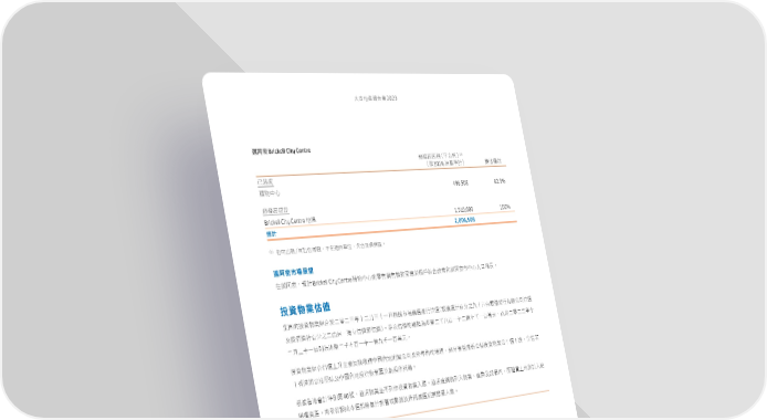 ˄̚ήପజѓࣣ2023 邁阿密Brickell City Centre (1) ᐼᅽࠦࠦጐ€̻˙ъ €ܲ100%މਿࠇ ᏐЦᛆू ʊໝϓ 496,508 62.9% ᒅيʕː ਗ਼೯࢝ධͦ Brickell City Centreή෯ 1,510,000 100% 2,006,508 總計 (1) ܸ̙̈ॡā̙̈ਯᅽࠦdʔܼ̍৾ԓЗe˂̨ʿஷ༸ਜf 邁阿密市場展望 ίᒕڛdཫࠇBrickell City Centreᒅيʕːٙཧਯቖਯᕘਗ਼աॡ˒ଡ଼Υҷഛձᒕڛ̹ʕːɛɹᄣڗf 投資物業估值 ණྠٙҳ༟يุଡ଼Υɚཧɚɧϋɤɚ˜ɧɤɓ˚࣬ኽ̹ఙᄆ࠽ආБП࠽€ܲᄆ࠽ࠇϵʱʘɘɤʬ͟ᏖᅃБϞࠢʮ̡П࠽ ʿܲᄆ࠽ࠇϵʱʘɚ̤͟ɓዹͭП࠽ࢪП࠽f݊ϣП࠽ٙᐼᕘމಥ࿆ɚɷɞϵɓɤɚᄂɖɷɓϵຬʩdϾɚཧɚɚϋɤ ɚ˜ɧɤɓ˚ۆމಥ࿆ɚɷɖϵɓɤɓᄂɘɷɓϵຬʩf ҳ༟يุଡ଼ΥП࠽ɪʺ˴ࠅˀ݈ϗᒅʕʫήڝ᙮ʮ̡ʿϋʫٙᄣᒅdʱ࠰ಥ፬ʮᅽҳ༟يุʮ̻࠽ɨൻëਯ߰ ʍ࠰ಥ፬ʮᅽᄴ˸ʿʕʫήҳ༟يุිгᑦฦהתቖf 40dৢֳيุԨʔΐЪҳ༟يุɝሪfৢֳܔጘيΐɝيุeᅀגʿண௪ʫdϾॡ༣ɺήۆࠇɝԴ ࣬ኽ࠰ಥึࠇۆୋ ͜ᛆ༟ପfՇ٫ޫܲϓ͉࠽ϔৰଢ଼ࠇұᔚאᛅቖʿОಯ࠽ᑦฦᅡ௪ɝሪf ಥ࿆ɤᄂʩ ҳ༟يุᜊਗ 288 286 +2.9 -4.0 284 +15.2 282 -1.2 281.3 280 ɚཧɚɧϋ ߕʮ̻࠽ ̈ਯ ɓ˜ɓ˚ഐၑ ϗूଋᕘ 278 276 ࠰ಥʮ̻࠽ ϗᒅڝ᙮ ිгࢨᕘ ᑦฦଋᕘ ʮ̡ 274 272 271.2 -3.0 ʕʫήʮ̻࠽ ᄣᒅ ɚཧɚɧϋ 270 ϗूଋᕘ ɤɚ˜ɧɤɓ˚ +0.1 ഐၑ 268 +0.1 2023ϋ1˜1˚ 2023ϋ12˜31˚ 55