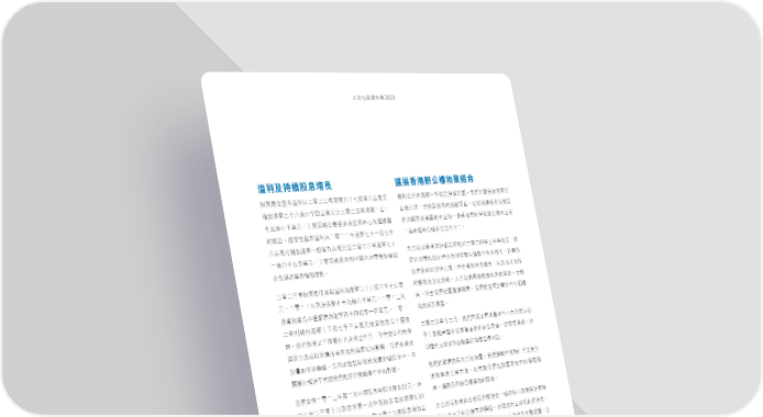 ˄̚ήପజѓࣣ2023 溢利及持續股息增長 擴展香港辦公樓物業組合 ٰ؇ᏐЦਿ͉๐л͟ɚཧɚɚϋಥ࿆ɞɤɖᄂཧʬϵຬʩ ܲʮ̡ٙಥ࿆ɓɷᄂʩҳ༟ࠇྌdҢࡁࠇྌҳ׳ಥ࿆ɧ ᄣ̋ಥ࿆ɚɤɞᄂʬɷ̬ϵຬʩЇɚཧɚɧϋಥ࿆ɓϵɓ ϵᄂʩආɓӉᓒ࢝࠰ಥٙᘶධͦdܼ̍ܵᚃҳ༟ʿ೯࢝ ɤʞᄂɖɷຬʩd˴ࠅˀ݈̈ਯ࠰ಥಥࢥ؇ʕːɘࡈᅽᄴ Ъމყਠุਜٙ˄̚ѥf௰อໝϓٙ͠ॴ፬ʮᅽ˄̚ѥ ٙϗूf੬ਿ͉๐л͟ɚཧɚɚϋಥ࿆ɖɤɓᄂɖɷ ɚࢭוॡଟʊ༺ϵʱʘʬɤɚf ʬϵຬʩᄣ̋ಥ࿆ɓᄂཧɘϵຬʩЇɚཧɚɧϋಥ࿆ɖɤ ˄̚ѥ௰อࠠܔࠇྌʈਗ਼ɚཧɚ̬ϋɪ̒ϋംʈdਗ਼ ɚᄂɞɷʞϵຬʩd˴ࠅˀ݈࠰ಥձʕʫήཧਯيุଡ଼ Զᄿᒪٙၠʷ˒̮;ኰ٤ග˸પਗ͛يεᅵfࠇྌ͵ Υʿৢֳุਕ੶ۊూf ܼ̍Όอٙ٤ʕԐ఼e˒̮භߕ฿ׂd˸ʿόᅵ ɚཧɚɧϋٰ؇ᏐЦяజ๐лމಥ࿆ɚɤʬᄂɧɷɖϵຬ ٙᖵஔʿ˖ʷݺਗf˄̚ѥਗ਼ყਠุਜٙᅺආɓӉ ʩdɚཧɚɚϋۆމಥ࿆ɖɤɘᄂɞɷຬʩfɚཧɚɧϋ ৷dୌΥҢࡁٟਜᐄிᗴ౻fҢࡁ࿁ධࠇྌʦϋᘱ ҳ༟يุʮ̻࠽ᑦฦމಥ࿆̬ɤ̬ᄂཧɓϵຬʩdɚཧɚ ҁϓชՑጳኧf ɚϋۆಥ࿆ɤʞᄂɖɷɧϵຬʩҳ༟يุʮ̻࠽ϗ ɚཧɚɧϋɤɚ˜dҢࡁҁϓ̈ਯಥࢥ؇ʕːɘᄴ፬ʮᅽ ूfҳ༟يุʮ̻࠽ᜊʷɗڢତږሯdʔึ࿁ʮ̡ٙᐄ ʚ˴ࠅॡ˒ᗇՎʿಂԫਕ္࿀։ࡰึfவධʹආɓӉ ༶ତږݴאٰ؇ᏐЦਿ͉๐лϓОᅂᚤfҢࡁٙ༟ପ Ιᗇ˄̚ѥЪމږፄุٙ፯ᐄ༶ήᓃf ࠋවڌڭܵᖢdʮ̡ٙৌਕًرஈੰ˥̻dϞ ᗫᜊʷཫࠇʔึ࿁Ңࡁٙҳ༟ഄଫପ͛Оᅂᚤf Ңࡁਗ਼ᘱᚃᓒ࢝˄̚ѥوྡfҢࡁഄଫϗᒅʠѿʈุɽ Ңࡁ܁бɚཧɚɧϋୋɚϣʕಂٰࢹӊٰಥ࿆0.72ʩdஹ ขձശขʈุɽขd˸ྼስҢࡁί༈ਜһ҃ɽٙ೯࢝ᗴ 0.33 ౻dᓒ࢝ʮ̡፬ʮᅽุਕٙوྡf Νɚཧɚɧϋɤ˜ݼ೯ٙୋɓϣʕಂٰࢹӊٰಥ࿆ ʩdΌϋٰࢹӊٰಥ࿆1.05ʩd༰ɚཧɚɚϋٰࢹᄣ̋ϵ ˄̚ᄿఙيุଡ଼Υᓒ࢝ආܓଣซdෂ୕ࣨːਠุਜနᔷ ʱʘʞfɚཧɚɧϋୋɚϣʕಂٰࢹਗ਼ɚཧɚ̬ϋʞ˜ Їᓒɽəٙږᙒʹஷᅹॲfމᄣ̋˄̚ᄿఙٙஷஹܓd ɚ˚€ಂ̬ݼ೯ʚɚཧɚ̬ϋ̬˜ʞ˚€ಂʞ፬ʮ Ңࡁ͍ጳܔɓૢБɛ˂dஹટ˄̚ᄿఙʿࢀ䅳ڀdࠇ ࣛගഐҼࣛ೮াٰ؇Τ̅ɪٰٙ؇fʮٰ̡΅ਗ਼͟ɚཧ ྌɚཧɚʞϋҁϓf͠ॴ፬ʮᅽ˄̚ᄿఙʬࢭʊໝ ɚ̬ϋ̬˜ɚ˚€ಂɚৎৰࢹf ϓd͊ԸҢࡁਗ਼ᘱᚃᓒ࢝˄̚ᄿఙيุଡ଼Υf ʮٰ̡ٙࢹ݁ഄ݊ྼତٰࢹܵᚃᄣڗdԨ͊Ըݼ˹ɽߒ ɓ̒ٙਿ͉๐лЪމ౷ஷٰࢹfίʊࠇྌٙҳ༟ධͦ˕ܵ ɨdҢࡁٙͦᅺ݊ӊϋٰࢹ˸ʕఊЗᅰٙషܓᄣڗf 17