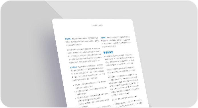 ˄̚ήପజѓࣣ2023 管理架構:ණྠணϞᆽٙଡ଼ᔌݖdܲהცܓʱৣϞ 內部審核:ණྠʫᄲࣨዹͭ၍ଣᄴϾٜટΣᄲࣨ։ ᗫՓ֛eᇜᄳձྼ݄ҏʿ္છࠬᎈٙ˚੬ᔖபf྇ࡰ ࡰึිజdఱ˴ࠅࠬᎈᇍᖚ֛ಂආБᏨীdԨ္છණྠึ ͣίϤཀʕהࠋٙபf ࠇeৌਕʿᐄ༶ҏٙΥܓfණྠʫᄲࣨٙᔖப ༉ࠑୋ106ࠫЇୋ107ࠫf ္છІ൙ҏࠅӋ၍ଣᄴл͜༉ٙਪ՜dఱৌਕజѓ݊ щ̙ቦeᐄ༶݊щϞࣖʿబࣖଟ˸ʿϞщ፭ςϞᗫج˙ 審核委員會 ࠦd൙Пࠬᎈ၍ଣʿʫ္છʈЪٙ̂ԑܓʿϞࣖ ᄲࣨ։ࡰึٙϓࡰܼ̍ɧΤڢ੬ਕԫdʱйމю͵حe ܓfՉཀʿഐ؈͟ʫࣨᅰࢪ̋˸ᏨীdԨϓᄲࣨ։ ቍྗᘆʿ৵˂ਃdࠋபпԫ҅ᄵБΆุ၍طʿৌਕజ ࡰึఱ္છʈЪϞࣖܓהЪٙϋܓ൙Пٙʱʫ࢙f ѓᔖਕf։ࡰึՉʕՇΤϓࡰމዹͭڢ੬ਕԫdՉʕю 監控及檢討:္છᐑྤה̍ўٙ݁ഄʿҏdϙίᆽڭϞ ͵حዄ։ࡰึ˴ࢩfהϞϓࡰɚཧɚɧϋΌϋᔖf ᗫ၍ଣܸͪ˸ੂБd˸ʿஈଣࠬᎈٙהცБਗ˸ආ ᄲࣨ։ࡰึٙᔖᛆᇍఖ፭࠰ಥึࠇࢪʮึܸٙˏࠈ֛d Бfவ̙ঐܼ̍ҭࡘʿݟᗇeᏨীeڭღ༟ପʿᔖபʱ ԨୌΥΆุ၍طςۆ֛ٙfϞᗫᔖᛆᇍఖ༱ʮ̡ၣ१f ᛆf္છʈЪ̙ʱމᐄ༶eৌਕజѓၾΥɧ˙ࠦdʔཀ வԬʈЪϞࣛאึࠠᛌf္છʈЪஷ੬ܼ̍j ᄲࣨ։ࡰึɚཧɚɧϋකึ̬ϣfৌਕԫeৌਕᐼ • ʱؓᏨীjԷνҪྼყڌତ࿁ˢཫၑeཫeۃಂڌତ ္eණྠʫᄲࣨ˴၍eԫ{ᅰᇁʿ༟ৃ߅Ҧʿ̮໌ ࣨᅰࢪܩ੬̈ࢩϞᗫึᙄfᄲࣨ։ࡰึӊϋၾ̮໌ࣨᅰࢪ ʿᘩن࿁˓ٙڌତ˸ආБᏨী • ٜટᔖঐאʈЪ၍ଣj͟ࠋபϞᗫᔖঐאʈЪٙ၍ଣɛ ᑘБЇˇՇϣึᙄʿၾණྠʫᄲࣨ˴၍ᑘБЇˇɓϣ ึᙄdϾӊϣ၍ଣᄴѩʔึΐࢩึᙄfӊϣึᙄѩᚎ̮ ࡰᄲቡڌତజѓ • ༟ৃஈଣjމݟࣨʹٙબᛆʿՉజѓ€νԷ̮ઋرజ ໌ࣨᅰࢪʿණྠʫᄲࣣࣨٙࠦజѓf̮໌П࠽ࢪ€Ꮦᅃ БϞࠢʮ̡͵̈ࢩՉʕՇϣึᙄf ѓٙᆽձҁϾආБ္ٙછʈЪ • ྼي္છjᆽڭண௪eπeᗇՎʿՉ˼༟ପՑڭᚐ ։ࡰึɚཧɚɧϋගٙʈЪdܼ̍Ꮸীɨΐԫ֝j Ԩ֛ಂટաᏨݟ • ڌତܸᅺjʱؓଡ଼ᐄ༶ʿৌਕᅰኽdӺ־Ϥʘගٙ • Ϟᗫණྠุᐶڌତ͍ٙόʮѓ€ܼ̍ɚཧɚɚϋϋܓʿ ɚཧɚɧϋʕಂజѓʿʮѓٙҁeᆽʿΌ ᗫڷdԨίცࠅࣛમ՟હБਗ • ᔖபʱᛆjྌʱʔΝɛࡰʘගٙᔖபd˸̋੶ՓፅЪ͜ dԨܔᙄԫ҅ஷཀ • ණྠ࿁္၍ʿج֛ۆٙ፭ς ձးඎಯˇ̈፹ʿᏺᛆٙࠬᎈ ʮ̡ʊՓ֛ϞࣖٙҏʿՓܓdᆽڭίࡰʈঐᄵБᔖப ٙҖόձࣛගʫdᗆйeߏʿිజϞᗫᐄ༶eৌਕʿΥ ˙ࠦٙ༟ࣘf 105