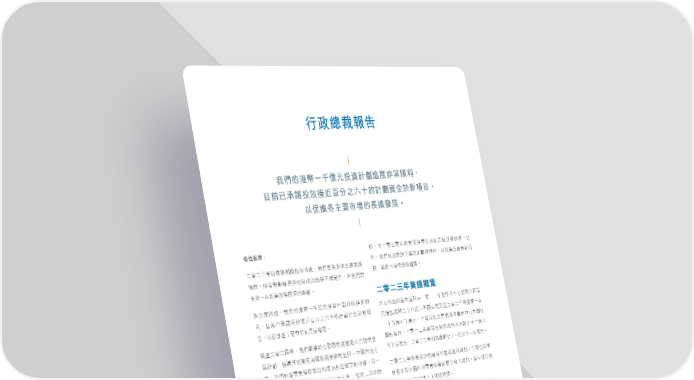 行政總裁報告 我們的港幣一千億元投資計劃進展非常順利, 目前已承諾投放接近百分之六十的計劃資金於新項目, 以促進各主要市場的長遠發展。 各位股東: dΣɚཧʞཧϋۃྼତଋཧર׳ٙڗჃͦᅺᒕආfϤ ̮dҢࡁɰ̋Ҟɨุਕٙᅰᇁᔷۨd˸ʿᄿعᏐ͜อ߅ ɚཧɚɧϋԣޥࠢՓણ݄՟ऊܝdҢࡁఃԈεධ˴ࠅุਕ Ҧdၡ൨̹ఙٙ೯࢝ᒈැf ూfኋ၍҃ᝈձήᇝ݁ط֠πʔᆽ֛dШҢࡁ࿁ ͊Ըɓϋุٙਕ೯࢝ڭܵᆀᝈf 二零二三年業績概覽 ν˴ࢩהࠑdҢࡁٙಥ࿆ɓɷᄂʩҳ༟ࠇྌආ࢝ڢ੬න ˄̚ήପٙਿ͉๐л͟ɚཧɚɚϋಥ࿆ɞɤɖᄂཧʬϵຬ лdͦۃʊוፕҳ׳ટڐϵʱʘʬɤٙࠇྌ༟ږอධ ʩᄣ̋ಥ࿆ɚɤɞᄂʬɷ̬ϵຬʩЇɚཧɚɧϋಥ࿆ɓϵ ͦd˸ڮආ˴ࠅ̹ఙٙڗჃ೯࢝f ɓɤʞᄂɖɷຬʩd˴ࠅˀ݈̈ਯ࠰ಥಥࢥ؇ʕːɘࡈᅽ ᄴٙϗूfɚཧɚɧϋ੬ਿ͉๐лމಥ࿆ɖɤɚᄂɞ ࢝ૐɚཧɚ̬ϋdҢࡁᘱᚃඪːۉۉપආ࠰ಥ˄̚ѥٙ೯ ɷʞϵຬʩdɚཧɚɚϋۆމಥ࿆ɖɤɓᄂɖɷʬϵຬʩf ࢝ࠇྌdܵᚃՉᜊϓމყਠุਜٙԢfʕʫή˙ ࠦdҢࡁٙཧਯ೯࢝ධͦѩϓމהί̹۬ٙήᅺdϾɓ ɚཧɚɧϋيุҳ༟ٙ੬ਿ͉๐лᄣ̋d˴ࠅ͟Ը eЗɧԭٙၝ ӻΐอධͦ͵ආ࢝නлdܼ̍Гτ˄̚Ԣ І࠰ಥʿʕʫήཧਯيุٙॡږϗɝᄣ̋dʕʱ Υཧਯ೯࢝ධͦeՇࡈЗɪऎٙɽۨၝΥ೯࢝ධͦd˸ ࠰ಥ፬ʮᅽॡږϗɝɨࠥהתቖf ʿ̏ԯచಥɚಂf ࠰ಥཧਯيุଡ଼Υٙూ੶ۊdա҅՟ऊהϞ༷ࣚ 2030̙ܵᚃ೯࢝ͦᅺ™fҢࡁጐਞၾ Ңࡁᘱᚃߧɢྼስ˜ ࠢՓણ݄ձޥઋᗫٙ၍Փણ݄d̹ఙऊ൬ं؟Ϟהҷ މಯᇠंࡉᜊʷʿɽІ್ᗫࠬᎈٙყࡇᙄdԨίɨ ഛfҢࡁҳ׳༟๕̹ఙપᄿʿึࡰᆤሧࠇྌdԨᏐ͜ يุଡ଼Υ༊Б࿃อ̙ٙܵᚃ೯࢝༆Ӕ˙ࣩf˄̚ήପਗ਼ᘱ ආᅰᇁҦஔ̋੶ၾᚥ܄ʝਗdԴ࠰ಥהϞਠఙϋʫ ᚃၾุਕྫМၡΥЪdጐપආҢࡁ̙ٙܵᚃ೯࢝ᙄ ᜑഹూdʱਠఙٙཧਯቖਯᕘࠠΫޥۃ˥̻f 20