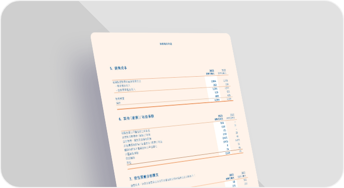 財務報表附註 5. 銷售成本 2023 2022 港幣百萬元 港幣百萬元 有關投資物業的直接租賃支出 – 帶來租金收入 2,984 2,798 – 並無帶來租金收入 282 199 3,266 2,997 119 621 物業買賣 899 685 酒店 4,284 4,303 6. 其他(虧損)/收益淨額 2023 2022 港幣百萬元 港幣百萬元 551 – 收購合資公司權益產生的收益 (16) 31 出售投資物業的(虧損)/收益 (2) – 出售物業、廠房及設備的虧損 (44) 20 出售歸類為持作出售資產的(虧損)/收益 (442) 48 歸類為持作出售資產的公平值變化 (240) (107) 外匯虧損淨額 8 31 政府補助 71 56 其他 (114) 79 7. 按性質劃分的開支 銷售成本、行政及銷售開支以及其他營運開支所包括的支出分析如下︰ 2023 2022 港幣百萬元 港幣百萬元 貿易應收款項減值支出* 40 341 物業、廠房及設備折舊(附註15) 275 232 使用權資產折舊 – 持作自用的租賃土地 29 25 – 物業 49 39 攤銷 – 無形資產(附註17) 66 53 – 投資物業初始租賃成本 96 79 2,115 1,899 職員成本 其他租賃費用** 31 32 核數師酬金 – 核數服務 14 11 – 稅務服務 2 3 – 其他服務 4 3 * 此等減值包括根據香港財務報告準則第9號與免除租賃付款有關之營業租賃應收款的預期信貸虧損,即年內提供予租戶的租金支援港幣三千六百萬元 (二零二二年:港幣三億一千九百萬元)。 ** 此等開支與短期租賃及低價值資產租賃有關。根據香港財務報告準則第16號,此等開支直接在綜合損益表中支銷,不包括在租賃負債的計量中。 154