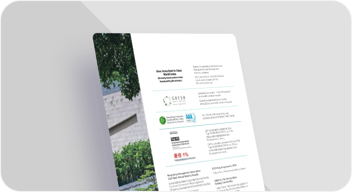 9 SWIRE PROPERTIES ANNUAL REPORT 2024 Ranked 1st globally in the Real Estate Management and Development Industry category Dow Jones Best-in-Class World Index constituent company for the 8th consecutive year Global Sector Leader – Listed (Mixed Use) for the 8th consecutive year Global Development Sector Leader (Mixed Use) for the 5th consecutive year No. 1 for the 7th consecutive year and maintained the highest “AAA” rating S&P Sustainability Yearbook 2025 Top 1% S&P Global ESG Score in the Real Estate Management and Development industry S&P Sustainability Yearbook (China) 2024 Top 1% S&P Global ESG Score (China) in the Real Estate Management and Development industry SEHK:1972 2024-2025 Hong Kong Management Association 2024 Best Annual Reports Awards Sustainability Report 2023: Best Environmental, Social and Governance Reporting Award (Property Development & Investment industry); Annual Report 2023: Gold Award (General category) Hong Kong Institute of Certified Public Accountants Best Corporate Governance and ESG Awards 2024 Sustainability Report 2023: ESG Award (Top Accolade) in the Non-Hang Seng Index (Large Market Capitalisation) Category Randstad Hong Kong Employer Brand Awards 2024 Most Attractive Employer in the Property and Real Estate Sector Human Resources Online HR Distinction Awards 2024 “Gold” – Excellence in Strategic Talent Attraction RICS Hong Kong Awards 2024 Taikoo Place: Environmental Impact Award LEED v4.1 for Communities: Existing Communities Taikoo Place: The first and only project in the Greater Bay Area to achieve Platinum certification (as at Dec 2024) LEED “Campaign: Frontiers” Programme Two Taikoo Place: The first and only Hong Kong project to be included in the 2024 Sustainable Frontiers List (as at Dec 2024) LEED Zero Certification Taikoo Hui, Guangzhou (Tower 2): The second and largest mixed-use office project globally (in terms of office building gross floor area) and the first mixed-use Chinese Mainland office to achieve LEED Zero Carbon and LEED Zero Energy certifications INDIGO: The first development in the Chinese Mainland to receive LEED Zero Water certification sector leader 2024