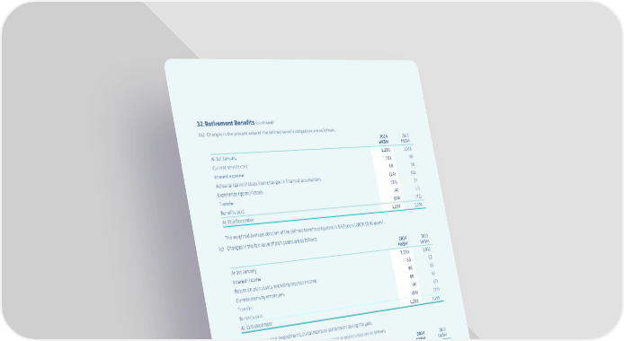 187 SWIRE PROPERTIES ANNUAL REPORT 2024 32. Retirement Benefits (continued) (b) Changes in the present value of the defined benefit obligations are as follows: 2024 HK$M 2023 HK$M At 1st January 1,200 1,018 Current service cost 101 88 Interest expense 50 50 Actuarial (gains)/losses from changes in financial assumptions (14) 105 Experience (gains)/losses (32) 17 Transfer (4) (7) Benefits paid (64) (71) At 31st December 1,237 1,200 The weighted average duration of the defined benefit obligations is 8.42 years (2023: 10.92 years). (c) Changes in the fair value of plan assets are as follows: 2024 HK$M 2023 HK$M At 1st January 1,155 1,032 Interest income 50 53 Return on plan assets, excluding interest income 86 66 Contributions by employers 80 82 Transfer (4) (7) Benefits paid (64) (71) At 31st December 1,303 1,155 There were no plan amendments, curtailments or settlements during the year. (d) Net expenses recognised in the consolidated statement of profit or loss are as follows: 2024 HK$M 2023 HK$M Current service cost 101 88 Net interest cost – (3) 101 85 The above net expenses were included in cost of sales and administrative expenses in the consolidated statement of profit or loss. Total retirement benefit costs charged to the consolidated statement of profit or loss for the year ended 31st December 2024 amounted to HK$119 million (2023: HK$105 million), including HK$18 million (2023: HK$20 million) in respect of defined contribution schemes. The actual return on defined benefit plan assets was a gain of HK$136 million (2023: HK$119 million).