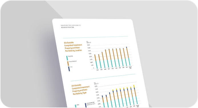 2031 2032 2024 2025 2026 2027 2028 2030 2029 40,000 35,000 30,000 25,000 15,000 20,000 5,000 10,000 0 GFA (000 sq. ft.) Attributable Completed Investment Property and Hotel Portfolio by Location Hong Kong Chinese Mainland U.S.A. Beyond 2032 40,000 35,000 30,000 25,000 15,000 20,000 10,000 5,000 0 2031 2032 2024 2025 2026 2027 2028 2030 2029 GFA (000 sq. ft.) Attributable Completed Investment Property and Hotel Portfolio by Type Office Retail Hotels/Residential/ Serviced apartments Under planning Beyond 2032 50 40 30 20 10 0 Target (HK$ Bn) HK$100 Billion Investment Plan Hong Kong Commitment for new projects 67% COMMITTED Committed Remaining target Chinese Mainland Residential trading projects (including in South East Asia) 32 MANAGEMENT DISCUSSION & ANALYSIS REVIEW OF OPERATIONS