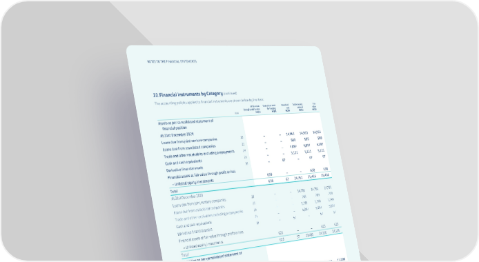 174 NOTES TO THE FINANCIAL STATEMENTS 22. Financial Instruments by Category (continued) The accounting policies applied to financial instruments are shown below by line item: Note At fair value through profit or loss HK$M Derivatives used for hedging HK$M Amortised cost HK$M Total carrying amount HK$M Fair value HK$M Assets as per consolidated statement of financial position At 31st December 2024 Loans due from joint venture companies 20 – – 14,963 14,963 14,963 Loans due from associated companies 21 – – 580 580 580 Trade and other receivables excluding prepayments 24 – – 4,097 4,097 4,097 Cash and cash equivalents 25 – – 5,121 5,121 5,121 Derivative financial assets 30 – 67 – 67 67 Financial assets at fair value through profit or loss – Unlisted equity investments 638 – – 638 638 Total 638 67 24,761 25,466 25,466 At 31st December 2023 Loans due from joint venture companies 20 – – 14,781 14,781 14,781 Loans due from associated companies 21 – – 209 209 209 Trade and other receivables excluding prepayments 24 – – 3,399 3,399 3,399 Cash and cash equivalents 25 – – 5,097 5,097 5,097 Derivative financial assets 30 – 57 – 57 57 Financial assets at fair value through profit or loss – Unlisted equity investments 623 – – 623 623 Total 623 57 23,486 24,166 24,166 Liabilities as per consolidated statement of financial position At 31st December 2024 Trade and other payables excluding non-financial liabilities 27 653 – 11,337 11,990 11,990 Long-term loans and bonds 29 – – 48,347 48,347 48,145 Lease liabilities 28 – – 520 520 520 Derivative financial liabilities 30 – 19 – 19 19 Total 653 19 60,204 60,876 60,674 At 31st December 2023 Trade and other payables excluding non-financial liabilities 27 613 – 9,146 9,759 9,759 Long-term loans and bonds 29 – – 41,169 41,169 40,598 Lease liabilities 28 – – 607 607 607 Derivative financial liabilities 30 – 22 – 22 22 Total 613 22 50,922 51,557 50,986
