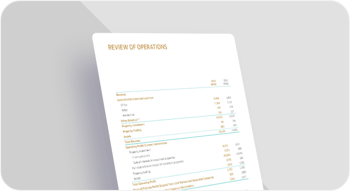 28 2024 HK$M 2023 HK$M Revenue Gross Rental Income derived from Office 5,488 5,835 Retail 7,388 7,143 Residential 440 430 Other Revenue (1) 136 117 Property Investment 13,452 13,525 Property Trading 88 166 Hotels 888 979 Total Revenue 14,428 14,670 Operating Profit/(Losses) derived from Property investment From operations 8,250 8,261 Sale of interests in investment properties (220) (60) Fair value losses in respect of investment properties (5,996) (2,829) Property trading (178) (89) Hotels (154) (103) Total Operating Profit 1,702 5,180 Share of Post-tax Profit/(Losses) from Joint Venture and Associated Companies 826 (292) (Loss)/Profit Attributable to the Company’s Shareholders (766) 2,637 (1) Other revenue is mainly estate management fees. Additional information is provided in the following section to reconcile reported and underlying profit attributable to the Company’s shareholders. These reconciling items principally adjust for the fair value movements on investment properties and the associated deferred tax in the Chinese Mainland and the U.S.A., and for other deferred tax provisions in relation to investment properties. In Hong Kong, the Group’s investment properties recorded fair value losses of HK$9,207 million in 2024. In the Chinese Mainland and the U.S.A., investment properties recorded fair value gains of HK$2,647 million and HK$341 million respectively. There are further adjustments to remove the effect of the movement in the fair value of the liability in respect of a put option in favour of the owner of a non-controlling interest, remeasurement gains on interests in joint venture companies which became subsidiary companies after completion of acquisition and a bargain purchase gain arising from the acquisition of an additional interest in a joint venture company. Amortisation of right-of-use assets classified as investment properties is charged to underlying profit. REVIEW OF OPERATIONS