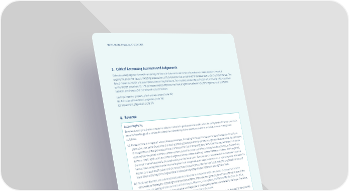 148 NOTES TO THE FINANCIAL STATEMENTS 3. Critical Accounting Estimates and Judgements Estimates and judgements used in preparing the financial statements are continually evaluated and are based on historical experience and other factors, including expectations of future events that are believed to be reasonable under the circumstances. The Group makes estimates and assumptions concerning the future. The resulting accounting estimates will, inevitably, seldom be equal to the related actual results. The estimates and assumptions that have a significant effect on the carrying amounts of assets and liabilities are discussed in the relevant notes as follows: (a) Impairment of property, plant and equipment (note 15) (b) Fair value of investment properties (note 16) (c) Impairment of goodwill (note 17) 4. Revenue Accounting Policy Revenue is recognised when a customer obtains control of a good or service and thus has the ability to direct the use and obtain benefits from the good or service. Provided the collectability of the related receivable is probable, revenue is recognised as follows: (a) Rental income is recognised when a lease commences. According to the contractual terms, leased properties do not have alternative uses to the Group after the leasing period stipulated in the signed tenancy agreements commence. Rental income is recognised on a straight-line basis over the shortest of (i) the remaining lease term, (ii) the period to the next rent review date and (iii) the period from the commencement date of the lease to the first break option date (if any), exclusive of any turnover rent (if applicable) and other charges and reimbursements (if any). Where the lease includes a rent-free period, the rental income foregone is allocated evenly over the lease term. Turnover rent is recognised when the lessee’s revenue transaction is recognised. Rental income forgiven (not recognised as an expected credit loss of operating lease receivables) is treated as a lease modification, and the revised future lease income under the new lease, including any prepaid or accrued lease income relating to the original lease is subsequently recognised as income on a straight-line basis. (b) The Group develops and sells residential properties. Revenue is recognised when control over the property has been transferred to the buyers. According to the contractual terms, the properties generally do not have alternative uses to the Group after the signing of sales contracts with the buyers. However, in Hong Kong, the Chinese Mainland and the U.S.A., an enforceable right to payment does not arise until legal title of the property has been transferred to the buyer. Therefore, revenue is recognised upon completion of the transfer of legal title to the buyer. (c) Sale of goods are recognised when control of the goods has transferred, being when the goods are delivered to the customer, the customer has full discretion over the use of the goods, and there is no unfulfilled obligation that could affect the customer’s acceptance of the goods. Sales of food and beverages happen at a point in time and do not include any significant separate performance obligations. (d) Sales of services, including services provided by hotel operations and estate management, are recognised when the services are rendered. Revenue is recognised over time rather than at a point in time. In determining the transaction price, the Group adjusts the promised amount of consideration for the effect of a financing component if it is significant.