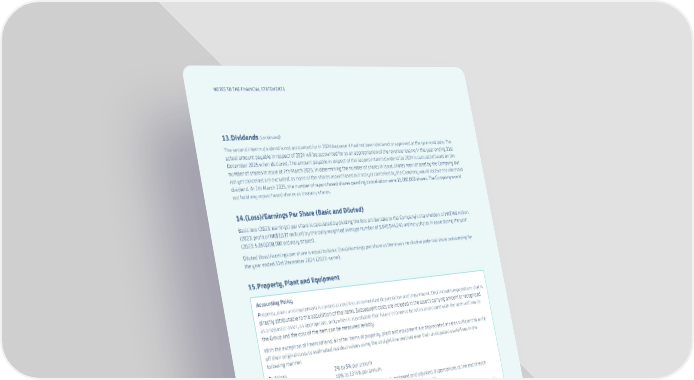 158 NOTES TO THE FINANCIAL STATEMENTS 13. Dividends (continued) The second interim dividend is not accounted for in 2024 because it had not been declared or approved at the year-end date. The actual amount payable in respect of 2024 will be accounted for as an appropriation of the revenue reserve in the year ending 31st December 2025 when declared. The amount payable in respect of the second interim dividend for 2024 is calculated based on the number of shares in issue at 7th March 2025. In determining the number of shares in issue, shares repurchased by the Company but not yet cancelled are excluded, as none of the shares repurchased but not yet cancelled by the Company would receive the aforesaid dividend. At 7th March 2025, the number of repurchased shares pending cancellation were 15,000,000 shares. The Company would not hold any repurchased shares as treasury shares. 14. (Loss)/Earnings Per Share (Basic and Diluted) Basic loss (2023: earnings) per share is calculated by dividing the loss attributable to the Company’s shareholders of HK$766 million (2023: profit of HK$2,637 million) by the daily weighted average number of 5,845,544,241 ordinary shares in issue during the year (2023: 5,850,000,000 ordinary shares). Diluted (loss)/earnings per share is equal to basic (loss)/earnings per share as there was no dilutive potential share outstanding for the year ended 31st December 2024 (2023: same). 15. Property, Plant and Equipment Accounting Policy Property, plant and equipment is carried at cost less accumulated depreciation and impairment. Cost includes expenditure that is directly attributable to the acquisition of the items. Subsequent costs are included in the asset’s carrying amount or recognised as a separate asset, as appropriate, only when it is probable that future economic benefits associated with the item will flow to the Group and the cost of the item can be measured reliably. With the exception of freehold land, all other items of property, plant and equipment are depreciated at rates sufficient to write off their original costs to estimated residual values using the straight-line method over their anticipated useful lives in the following manner: Buildings 2% to 5% per annum Plant and equipment 10% to 331/3% per annum The assets’ expected useful lives and residual values are regularly reviewed and adjusted, if appropriate, at the end of each reporting period to take into account operational experience and changing circumstances. On the transfer of owner-occupied property to investment property, increases in the carrying amount arising on revaluation of land and buildings are credited to the consolidated statement of other comprehensive income and shown as property revaluation reserve in shareholders’ equity. Decreases that offset previous increases of the same asset are charged in the consolidated statement of other comprehensive income and debited against property revaluation reserve directly in equity; all other decreases are charged to the consolidated statement of profit or loss. Gains and losses on disposals are determined by comparing the proceeds with the carrying amounts and are recognised within other net gains/(losses) in the consolidated statement of profit or loss. When revalued assets are sold, the amounts included in the property revaluation reserve are transferred to revenue reserve. Critical Accounting Estimates and Judgements At each reporting date or whenever a change in circumstances occurs, both internal and external sources of information are considered to assess whether there is an indication that assets are impaired. If such an indication exists, the recoverable amount of the asset is estimated using fair value less costs of disposal and/or value in use calculations as appropriate. If the carrying amount of an asset exceeds its recoverable amount, an impairment charge is recognised to reduce the asset to its recoverable amount. Such impairment charges are recognised in the consolidated statement of profit or loss within other net gains/(losses).
