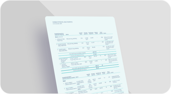 208 SCHEDULE OF PRINCIPAL GROUP PROPERTIES At 31st December 2024 Completed properties for investment in Hong Kong Address Leasehold expiry Site area in square feet Gross floor area in square feet Number of car parks Year of completion Remarks Hotel (continued) 3. JW Marriott Hotel, Pacific Place 88 Queensway, Admiralty 2135 115,066 (part) 525,904 – 1988 608-room hotel, in which the Group owns a 20% interest. 4. Conrad Hong Kong Hotel, Pacific Place 88 Queensway, Admiralty 2047 203,223 (part) 555,590 – 1990 513-room hotel, in which the Group owns a 20% interest. 5. Island Shangri-La Hotel, Pacific Place 88 Queensway, Admiralty 2047 203,223 (part) 605,728 – 1991 544-room hotel, in which the Group owns a 20% interest. Total held through associated companies 1,687,222 – – of which attributable to the Group 337,444 6. Novotel Citygate Hong Kong, Citygate 51 Man Tung Road, Tung Chung, Lantau Island 2047 358,557 (part) 236,758 25 2005 440-room hotel, in which the Group owns a 26.67% interest. 7. The Silveri Hong Kong – MGallery, Citygate 16 Tat Tung Road, Tung Chung, Lantau Island 2063 107,919 (part) 131,965 5 2019 206-room hotel, in which the Group owns a 26.67% interest. Total held through joint venture companies 368,723 30 – of which attributable to the Group 98,326 Completed properties for investment in the Chinese Mainland Address Leasehold expiry Site area in square feet Gross floor area in square feet Number of car parks Year of completion Remarks Retail 1. Taikoo Li Sanlitun (Taikoo Li Sanlitun South) 19 Sanlitun Road, Chaoyang district, Beijing 2044 (2054 for car parks) 566,332 (part) 776,909 417 2007 Shopping centre with restaurants and cinema. 2. Taikoo Li Sanlitun (Taikoo Li Sanlitun North) 11 Sanlitun Road, Chaoyang district, Beijing 2044 (2054 for car parks) 566,332 (part) 519,399 340 2007 Shopping centre with restaurants. 3. Taikoo Li Sanlitun (Taikoo Li Sanlitun West) 58 Workers’ Stadium North Road, Chaoyang district, Beijing 2033 40,102 293,405 50 2021 Shopping centre with restaurants leased by the Group. 4. Building 15 15 Sanlitun North, Chaoyang district, Beijing 2048 4,861 19,011 – 2000s Commercial building acquired by the Group. 5. The Red Building 15A, Sanlitun North, Chaoyang district, Beijing 2027 7,641 10,077 – 2000s Shopping centre leased by the Group. 6. Hui Fang 75 Tianhe East Road, Tianhe district, Guangzhou 2044 174,377 (part) 90,847 100 2008 Shopping centre with restaurants. 7. Taikoo Hui 383 Tianhe Road, Tianhe district, Guangzhou 2051 526,941 (part) 1,529,392 718 2011 Shopping centre with restaurants. Floor area shown represents the retail portion, in which the Group owns a 97% interest. 8. Taikoo Li Chengdu Daci Temple Area, 9 Dongda Street, Jinjiang district, Chengdu 2051 814,604 (part) 1,314,237 1,051 2014 Shopping centre with restaurants and cinema. Floor area shown represents the retail portion. 9. Heritage Buildings in Taikoo Li Chengdu Daci Temple Area, 9 Dongda Street, Jinjiang district, Chengdu 2034 N/A 40,387 – 2014 Heritage Buildings leased from the local government as part of the retail operation of Taikoo Li Chengdu. Total held through subsidiaries 4,593,664 2,676