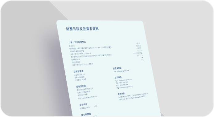 216 財務日誌及投資者資訊 註冊辦事處 太古地產有限公司 香港金鐘道88號 太古廣場一座33樓 股份登記處 香港中央證券登記有限公司 香港皇后大道東183號 合和中心17M樓 網址: www.computershare.com 股份代號 香港聯合交易所 01972 獨立核數師 羅兵咸永道會計師事務所 執業會計師 及註冊公眾利益實體核數師 二零二五年財務日誌 除息交易 四月一日 暫停辦理股票過戶手續以確認可收取二零二四年度第二次中期股息的資格 四月三日 年度報告書供股東閱覽 四月九日 派發二零二四年度第二次中期股息 五月八日 暫停辦理股票過戶手續以確認可出席股東周年大會並於會上投票的資格 五月八日至十三日 股東周年大會 五月十三日 宣佈中期業績 八月 派發二零二五年度第一次中期股息 十月 免責聲明 本文件可能載有前瞻性陳述,反映公司對未來或未來事件的信念、計劃或期望。此等前瞻性陳述乃基於多項假設、估算及預測而作 出,因此可能存在一些內在風險、不確定因素或其他非公司所能控制的因素。事件的實際結果或結局或會因一些因素而導致出現重 大及/或不利的分別,這些因素包括集團營運業務的經濟環境或行業(特別在香港及中國內地)出現變化、宏觀經濟及地緣政治不明 朗、競爭環境改變、數據質量、匯率和利率及商品價格變動,以及集團確定和管理其所面對的風險的能力。此等前瞻性陳述的任何 內容均不得或不應被用作為未來的任何保障或聲明的依據,或其他方面的聲明或保證。公司或其董事、高級人員、僱員、代理人、 聯繫人、顧問或代表,概不會就更新此等前瞻性陳述,或因應未來事件或發展修改此等陳述,或提供有關此等陳述的附加資料或更 正任何不準確資料承擔任何責任。 投資者關係 電郵: ir@swireproperties.com 公共事務 電郵: pad@swireproperties.com 電話: (852) 2844-3888 傳真: (852) 2918-9960 網址: www.swireproperties.com 徵求回應 為求改進我們的財務報告,讀者如對我們的公告及披露資料 有任何意見,歡迎電郵至ir@swireproperties.com表達。