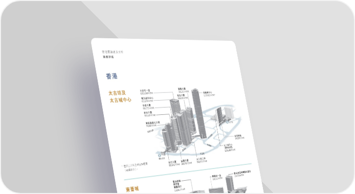 華蘭路 太古城道 濱海街 東區走廊 德宏大廈 803,452 平方呎 康橋大廈 268,795 平方呎 太古坊二座 994,973 平方呎 港島東中心 1,537,011 平方呎* 濠豐大廈 501,253 平方呎 栢克大廈 388,838 平方呎 多盛大廈 601,723 平方呎 林肯大廈 333,529 平方呎 太古城中心 (購物商場) 1,096,898 平方呎 香港東隅 199,633 平方呎 電訊盈科中心 613,679 平方呎 太古坊一座 1,013,368 平方呎 東隅服務式公寓 75,068 平方呎 東薈城一座 160,522 平方呎 香港銀樾 美憬閣 精選酒店 131,965 平方呎 香港諾富特東薈城酒店 236,758 平方呎 北大嶼山公路 達東路 東涌站 東薈城名店倉 803,582 平方呎 美東街 太古廣場 (購物商場) 711,182 平方呎 太古廣場栢舍 443,075 平方呎 太古廣場二座 695,510 平方呎 香港JW 萬豪酒店 525,904 平方呎 SPACES. 8QRE 81,346 平方呎 太古廣場三座 627,657 平方呎 奕居 158,738 平方呎 太古廣場一座 863,266 平方呎 香港港麗酒店 555,590 平方呎 港島香格里拉 大酒店 605,728 平方呎 太古廣場五座 145,903 平方呎 太古廣場三座 行人隧道(地下) 將會延伸至 太古廣場六座 軒尼詩道 金鐘道 STAR STUDIOS 52,273 平方呎 太古廣場六座 222,953 平方呎 EIGHT STAR STREET 5,901 平方呎* 太古坊及 太古城中心 東薈城 太古廣場 香港 英皇道 太古站 鰂魚涌站 金鐘站 * 住宅買賣項目,樓面面積 包括住宅大廈餘下單位的 總樓面面積3,050平方呎。 * 包括已出售之45至54樓層 ﹙49樓除外﹚。 管理層論述及分析 業務評述