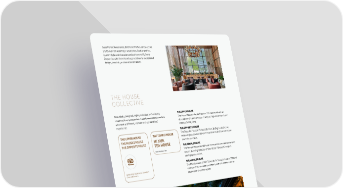 Swire Hotels’ two brands, EAST and The House Collective, are found in several major world cities. Each brand has its own style and character and both exemplify Swire Properties with their shared appreciation for exceptional design, creativity and service excellence. THE HOUSE COLLECTIVE Beautifully designed, highly individual and uniquely THE UPPER HOUSE imagined luxury properties made for seasoned travellers The Upper House in Pacific Place is a 117-room hotel with an who seek a different, intimate and personalised atmosphere of tranquil modern luxury set high above the vibrant experience. streets of Hong Kong. THE OPPOSITE HOUSE THE UPPER HOUSE THE TEMPLE HOUSE The Opposite House in Taikoo Li Sanlitun, Beijing is a distinctive, THE MIDDLE HOUSE MI XUN emerald glass-covered 99-room hotel that is full of fascinating and THE OPPOSITE HOUSE TEA HOUSE dramatic contrasts. THE TEMPLE HOUSE One-Michelin Star The Temple House has 100 hotel rooms and 42 serviced apartments and is a stunning reflection of Sino-Ocean Taikoo Li Chengdu’s heritage preservation. THE MIDDLE HOUSE At the 2022 TripAdvisor Travellers' The Middle House at HKRI Taikoo Hui in Shanghai houses 111 hotel Choice® Awards rooms and 102 serviced apartments, with chic interiors and an abundance of outdoor space. PAGE 118 SWIRE PROPERTIES