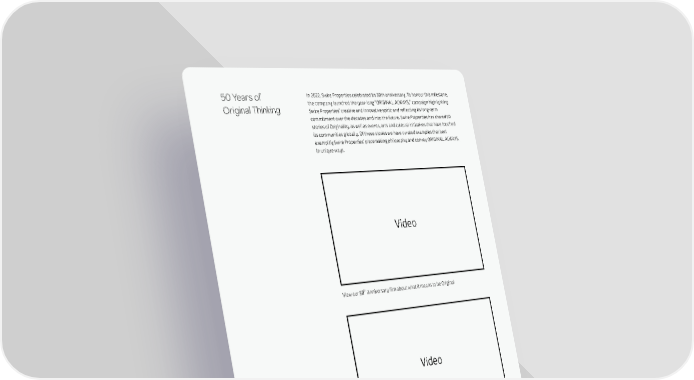 50 Years of In 2022, Swire Properties celebrated its 50th anniversary. To honour this milestone, Original Thinking the company launched the year-long “ORIGINAL. ALWAYS.” campaign highlighting Swire Properties’ creative and innovative spirit; and reflecting its long-term commitment over the decades and into the future. Swire Properties has shared 50 stories of Originality, as well as events, arts and cultural initiatives that have touched its communities globally. Of these stories we have curated examples that best exemplify Swire Properties’ placemaking philosophy and convey ORIGINAL. ALWAYS. in unique ways. Video th View our 50 Anniversary film about what it means to be Original Video Hear from our previous and current leaders on our 50 years of placemaking Learn more about Swire Properties' 50th Anniversary campaign here SWIRE PROPERTIES PAGE 9