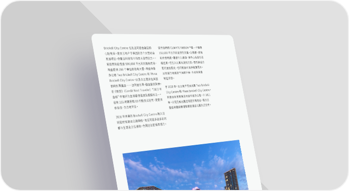 Brickell City Centre 位处迈阿密金融区的 设计独特的CLIMATE RIBBON™是一个横跨 心脏地带,是太古地产于美国的首个大型综合 150,000平方尺的波浪形天幕,以精钢、玻璃 发展项目,亦是迈阿密首个同类大型项目之一。 和纤维制成,覆盖行人通道,将中心各部份连 项目首阶段包括500,000平方尺的购物商场、 结起来。它引入比斯坎湾的凉风,崭新的设计 两座提供390个单位的住宅大厦、两座中层 既可遮挡阳光,也可制造对流并收集雨水, 办公楼Two Brickell City Centre 和 Three 以舒缓当地极端气候的不适,为顾客营造 Brickell City Centre,以及太古酒店在美国 舒适环境。 首间东隅酒店──迈阿密东隅,酒店屡获殊荣, 于2020年,太古地产完成出售Two Brickell 在《悦游》(Condé Nast Traveler)“2022年 City Centre和Three Brickell City Centre, 金榜”中被评为全球最佳酒店及度假村之一, 并继续负责管理这两座甲级办公楼。于2021 设有255间客房和89间服务式住宅,更提供 年,公司完成出售迈阿密东隅物业,而太古 停车位,为当地罕见。 酒店将继续管理和营运酒店与服务式住宅。 2016年开幕的Brickell City Centre融入迈 阿密的铁路与公路网络,与迈阿密多姿多彩的 都市生活全方位接轨,为周边社区增添活力。 第 106 页 太古地产