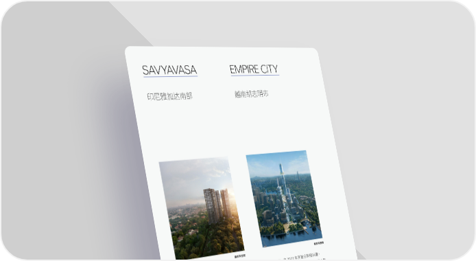 SAVYAVASA EMPIRE CITY 印尼雅加达南部 越南胡志明市 画家构思图 画家构思图 Savyavasa是太古地产在于印尼雅加达南部 Empire City由2021年开始分阶段兴建, 的首个豪华住宅开发项目,坐落于雅加达 是位于越南胡志明市一个以住宅为主导的大型 最具浓厚文化色彩的Dharmawangsa地段。 综合项目。座落西贡河畔Thu Thiem新市区 项目由3幢住宅大厦组成,合共提供 431 个单 14.64公顷的优越地段,总楼面面积逾710万 位,面积较大的单位更设有中空客饭厅间隔, 平方尺,这个社区营造项目将打造出越南最新 让住客专享悠然生活,另外也设有一条长 1 公 的商业区,由住宅、办公楼、酒店与服务式公寓 里的步行道,天然公园和城市森林。 预计于 组成。项目现正兴建中,于2028年前分阶段 2024年落成的Savyavasa更是雅加达 落成。 首个以新加坡绿色标章金牌等级为指标兴建 的住宅项目。位处黄金地段的Savyavasa 毗邻Dharmawangsa Square购物中心、 多间豪华酒店、酒吧和餐厅,以及多间城中最 顶尖的国际学校。 第 114 页 太古地产