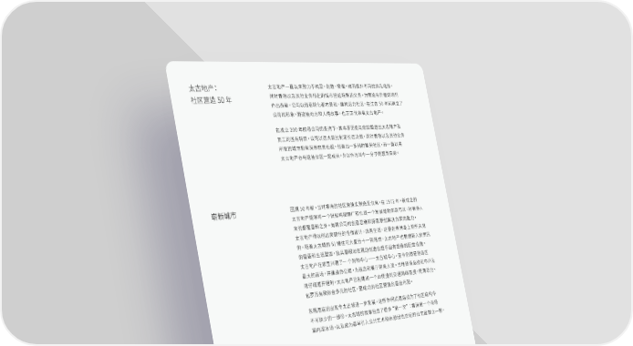 太古地产: 太古地产一直以来致力于构思、创造、管理,继而提升不同的非凡场所, 社区营造50年 并对香港以及其他业务所在的城市担起特殊的义务,为营造有价值的场所 作出贡献。公司以创意转化都市景观,建构活力社区,在过去50年间确立了 公司的形象,而这些地方和人情故事,也正正代表着太古地产。 在成立200年的母公司的支持下,其丰厚历史与成就塑造出太古地产及 员工的固有特质,公司以远大目光制定长远决策,并对香港以及其他业务 所在的城市抱有深厚的责任感,创造出一系列的繁荣社区,而一直以来 太古地产亦与这些社区一起成长,并以作为当中一分子而感到自豪。 崭新城市 回溯50年前,当时香港的社区营造实例绝无仅有,在1972年,新成立的 太古地产能够将一个旧船坞和糖厂转化成一个发展蓬勃的新市区,对很多人 来说都是意料之外。有赖公司的创意思维和探索原创解决方案的能力, 太古地产得以创出突破性的住宿设计,改善生活,这是在香港岛上前所未见 的。随着太古城的61幢住宅大厦分十一期落成,太古地产也根据新入伙居民 的需要和生活型态,独具慧眼地在周边创造出超乎固有想像的配套设施。 太古地产在那里兴建了一 个购物中心——太古城中心,至今仍然是港岛区 最大的商场,并建造办公楼,为商店和餐厅带来人流。当地铁港岛线和中环及 湾仔绕道开通时,太古地产已创建出一个由便捷的交通网络连接,充满活力、 包罗万有和综合多元的社区,是成功的社区营造的最佳示范。 东隅酒店的出现令太古城进一步发展,这所休闲式酒店成为了社区结构中 不可缺少的一部份。太古城的故事包含了很多“第一次”:香港第一个商场 室内溜冰场,以及成为最早引入公共艺术和休憩绿色空间的住宅屋苑之一等。 第 6 页 太古地产