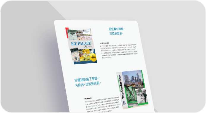 創造難忘體驗, 這就是原創。 太古城中心冰上皇宫 第一次溜冰體驗,總令人難以忘懷——忐忑緊張、搖晃不定、歡聲笑語,還有被你 緊抓不放的家人和朋友。正是這些讓人值得珍惜的記憶,令太古地產於1982年 萌生了一個創思——於太古城中心內建造冰上皇宮。自此之後,冰上皇宮成為了 眾多香港傑出溜冰選手的熱門訓練場地。太古城中心亦不斷尋找新方式,為本地 社區營造獨一無二的珍貴回憶,包括曾將溜冰場變身成為巨型波波池。創造難忘 體驗,這就是原創。 於鐵路軌道下開闢一 片綠洲,這就是原創。 The Underline 在邁阿密Metrorail高架輕軌鐵路的遮蔭下,一個新穎的創思已紮根 於此。太古地產聯同邁阿密戴德郡、當地社區及屢獲殊榮的建築工作 室James Corner Field Operations,將高架輕軌鐵路下未被充分 利用的土地活化成10英里之長線形公園。公園內設有城市步道、藝術 遊戲裝置及一系列公共設施,用於健身、瑜伽及全方位身心靈健康 活動。於鐵路軌道下開闢一片綠洲,這就是原創。 建基於文化以構築生活 領地,這就是原創。 興業太古滙 這是一個位於上海靜安區中心,關於文化傳承與創新理念 的故事。該區域因建成具創新概念的時尚商業中心、兩座 甲級寫字樓、兩間酒店及其服務式住宅,其中包括鏞舍, 而聲名大噪。整個項目中最重要的是位於該社區一角、 前身為民立中學的歷史建築。為保護這座具有百年歷史的 文化地標,該建築經過修繕,再藉助液壓千斤頂順利完成 了57米的平移工程。建基於文化以構築生活領地,這就 是原創。 在這裡了解更多太古地產的原創故事。 太古地產 第 13 頁