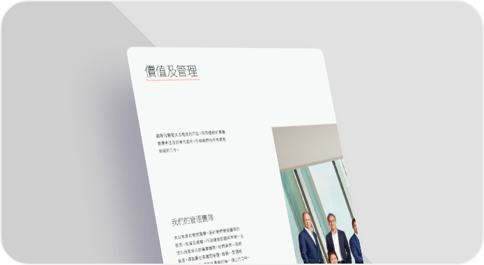 Swire Properties Corporate Brochure 2022 TC Page 25 Page 27價值及管理 創新衍變是太古地產的宗旨,深深植根於集團 營運手法及行事作風中,引領我們在所有業務 領域的工作。 我們的管理團隊 太古地產的斐然聲譽,源於我們管理團隊的 技術、知識及經驗。行政總裁彭國邦率領一支 文化背景多元的專業團隊,他們秉持一致的 信念,相信要在各層面增值,有賴一套清晰 連貫的價值觀,並將其貫徹於每一項工作之中。 24 太古地產 第 頁